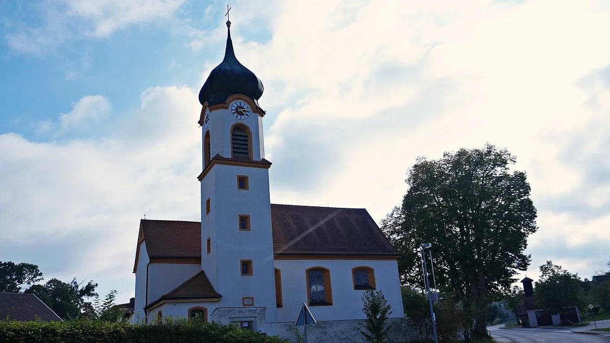 Die 1716 vom Eichstätter Hofbaumeister Benedikt Ettl errichtete Kirche hatte einen Vorgängerbau aus der Zeit um 1600. 1911 ersetzte der Münchner Architekt Hans Schurr den bisherigen Dachreiter durch einen Turm. Die Biesenharder hatten das Glück, 1716 beim Abbruch der alten Kirche einen 9 Pfund schweren Silbermünzschatz zu entdecken, den ihnen der Bischof zur Ausstattung der neuen Kirche überließ.